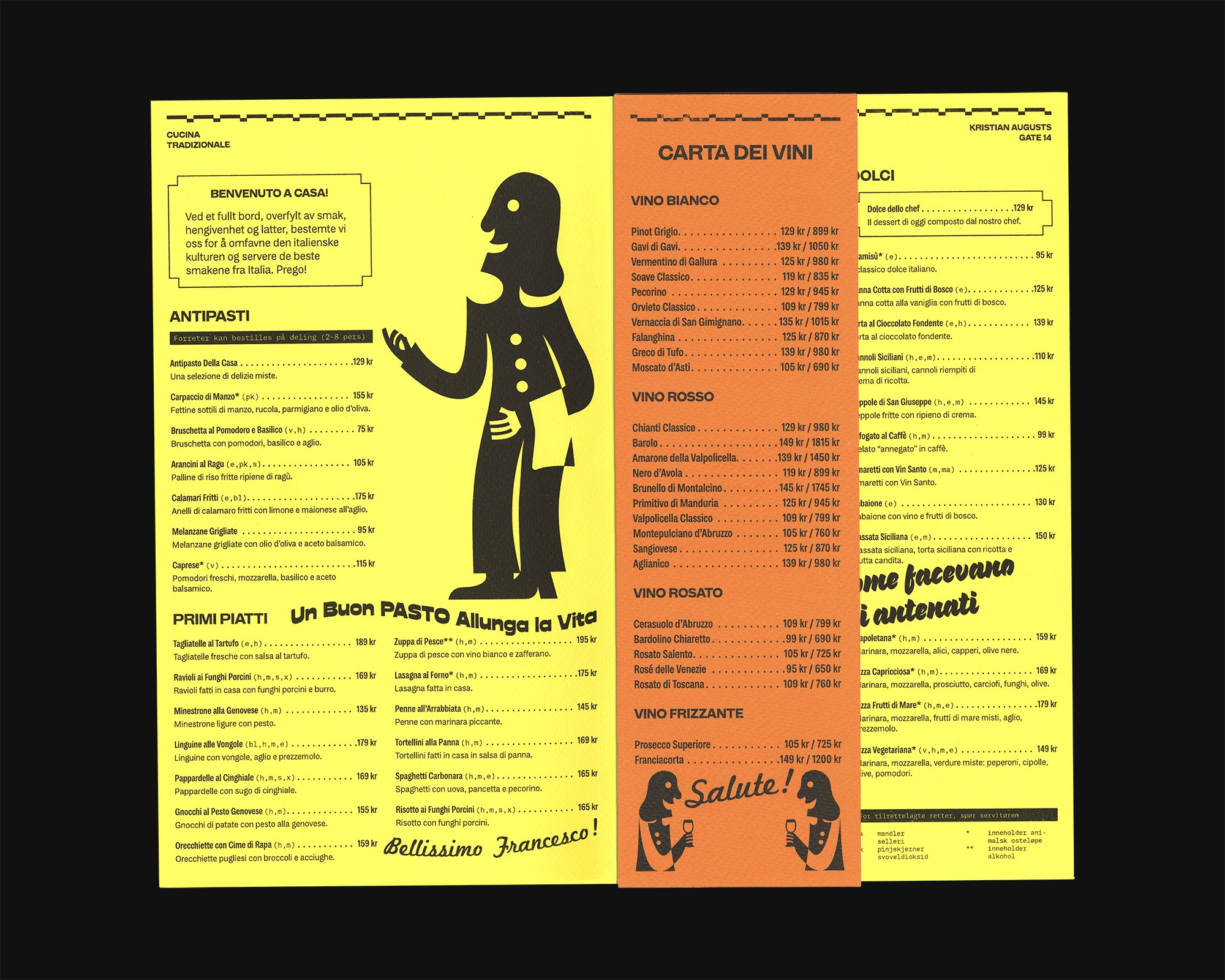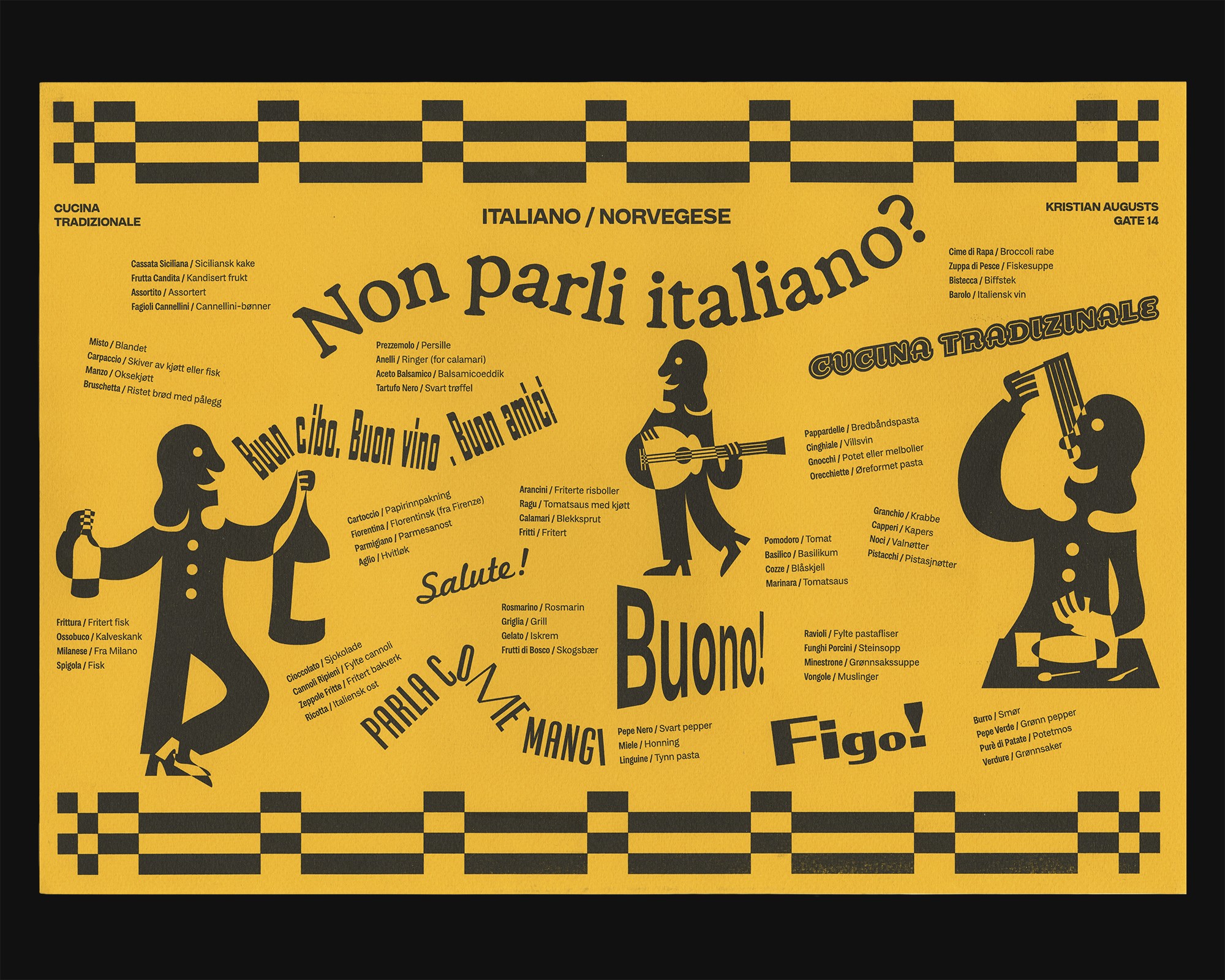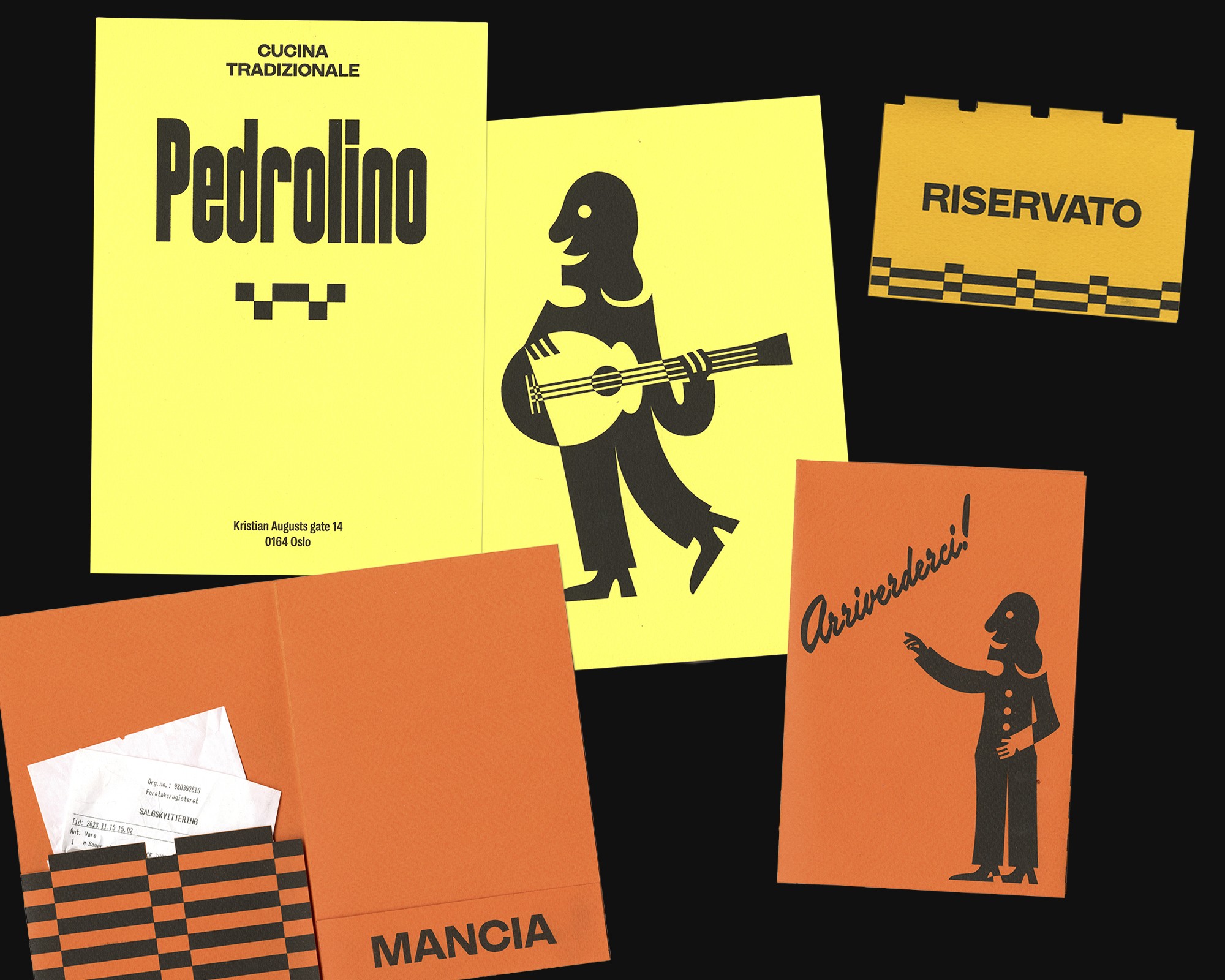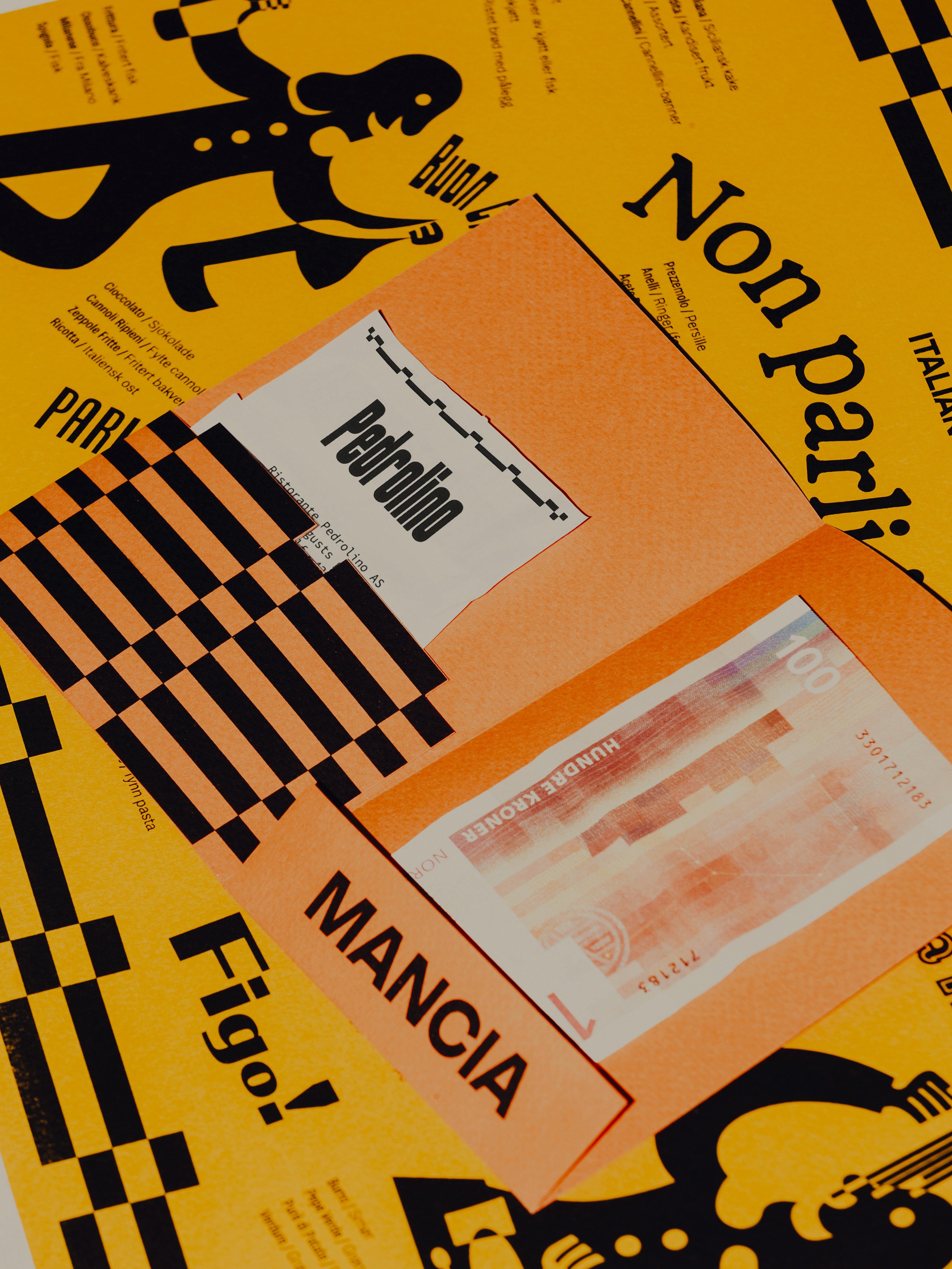 Inspired by Italian comedy and culinary simplicity, the visual identity boasts illustrations crafted in spirit of Fortunato Depero, complemented by typographic elements drawn from Italian daily language. This eclectic blend, anchored by the marionette Pedrolino from "Commedia dell'arte," aims to capture the essence of Italian humor and culinary tradition, ensuring a timeless appeal that resonates with guests seeking a unique dining experience.